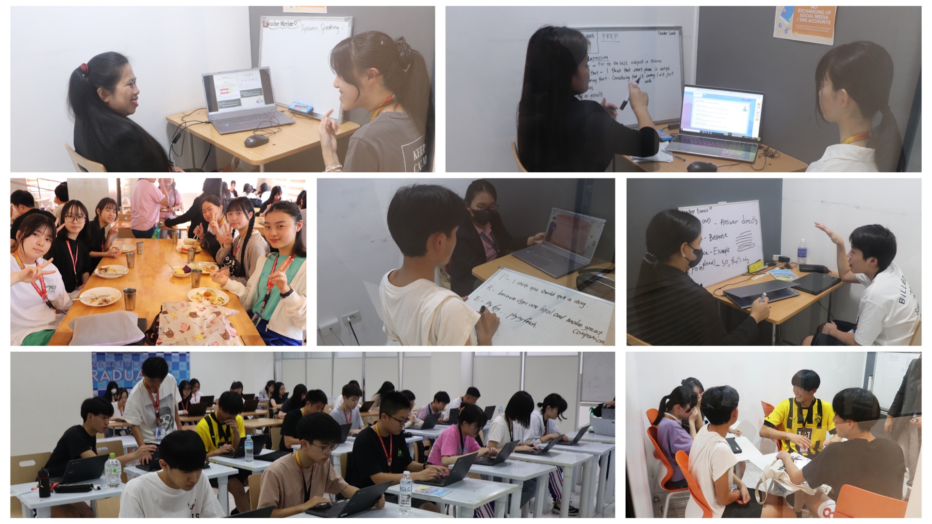グループレッスンとマンツーマンレッスンの両方があり、生徒たちは個別に組まれた時間割に従って、自分に合ったレベルで英会話学習に臨みました。